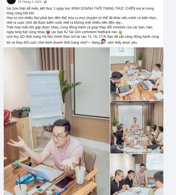 Bạn yêu thích thời trang và ấp ủ mong muốn khởi nghiệp, nhưng lại chưa biết bắt đầu từ đâu? Hoặc bạn đã từng thử kinh doanh nhưng mãi vẫn loay hoay với bài toán doanh thu, sản phẩm, khách hàng? Đây chính là chương trình dành cho bạn! Trong chương trình đặc biệt này, bạn sẽ được hướng dẫn từng bước cụ thể để bắt đầu kinh doanh thời trang từ con số 0, với lộ trình rõ ràng để chạm mốc lợi nhuận 100 triệu đồng/tháng ngay từ những tháng đầu tiên. Không lý thuyết suông – đây là chia sẻ thực tế từ người đi trước, từ thất bại đến thành công, từ cửa hàng nhỏ đến thương hiệu bền vững. Nếu bạn thật sự nghiêm túc với con đường khởi nghiệp thời trang, đừng bỏ lỡ buổi học miễn phí nhưng vô cùng giá trị này.