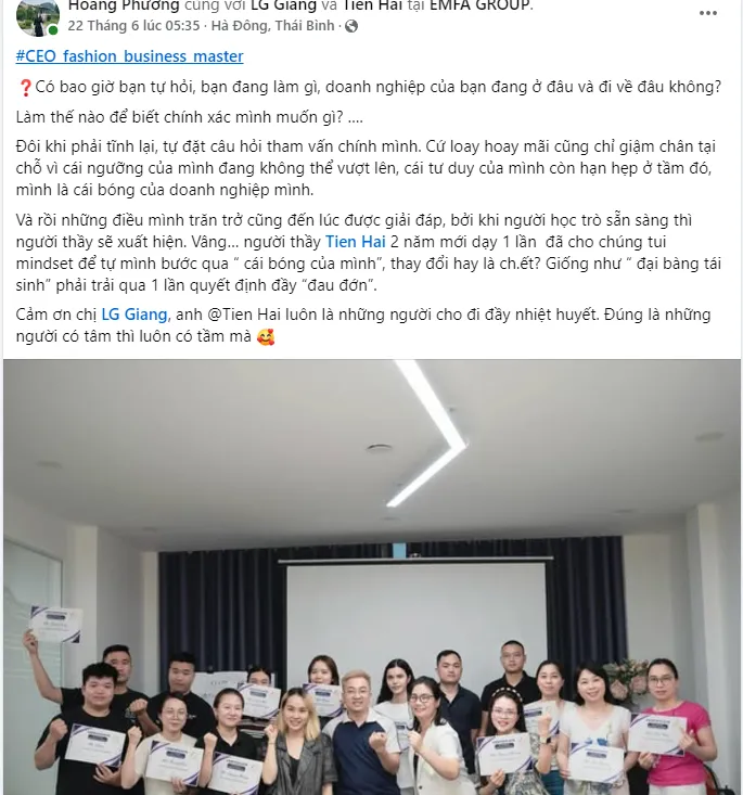 Chúng tôi không tin vào những mô hình làm giàu nhanh chóng hay công thức “thành công sau một đêm” trong kinh doanh. Chúng tôi tin rằng mỗi hành trình khởi nghiệp – đặc biệt là trong ngành thời trang – cần bắt đầu bằng tư duy đúng, lộ trình rõ ràng và sự cam kết hành động thực tế. Những kết quả được chia sẻ trong chương trình là trải nghiệm thực tế của những người đã áp dụng đúng phương pháp. Tuy nhiên, chúng tôi không thể đảm bảo mọi người sẽ đạt được kết quả giống nhau, bởi mỗi người có điểm xuất phát, hoàn cảnh và mức độ nỗ lực khác nhau. Bạn có thể đạt được kết quả tốt hơn hoặc cần thêm thời gian để thấy sự chuyển biến. Tất cả phụ thuộc vào mức độ bạn cam kết và hành động theo lộ trình đã được chia sẻ. Chúng tôi cam kết sẽ đồng hành và hỗ trợ bạn hết mình trong hành trình khởi nghiệp này.